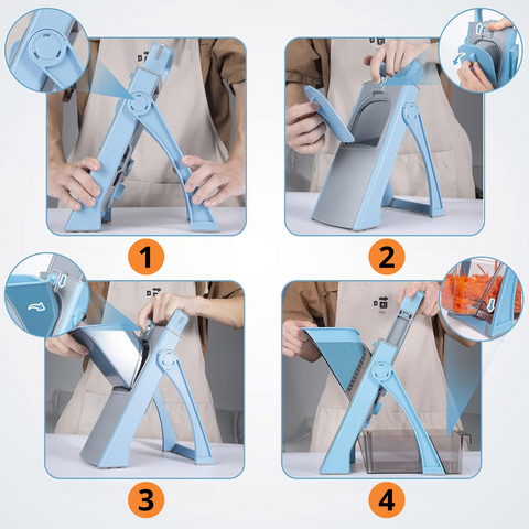 Despídase de los cortes desiguales que arruinan su cocina. Con el cortador Cut Chef obtendrá siempre rodajas perfectas y uniformes. Se acabaron los problemas con los cuchillos y los resultados irregulares. Es rápida, fácil y segura de usar, haciendo que su experiencia en la cocina sea más suave y agradable. Tanto si prepara ensaladas, patatas fritas o platos elaborados, Cut Chef es su nueva mejor amiga en la cocina.